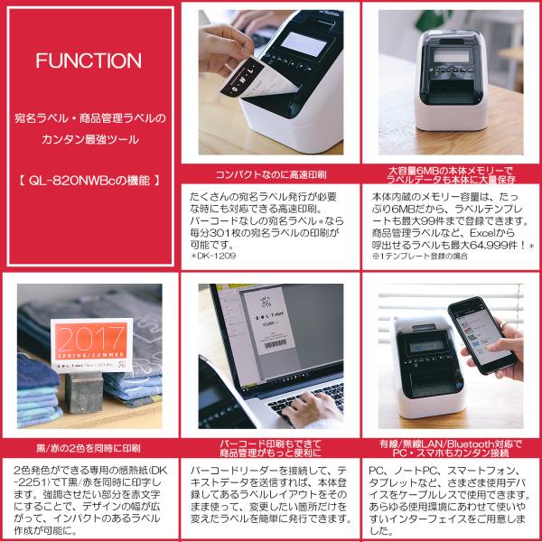 【ブラザー正規代理店】 選べる純正ラベル1巻サービス!ブラザー感熱ラベルプリンター QL-820NWBc(ネットワーク接続 有線/無線LAN/Bluetooth対応) PC スマホ