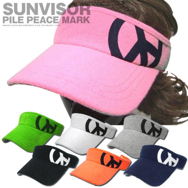 SUNVISORパイル地ピースマークサンバイザー男女兼用/レディース/夏用/フェス/ゴルフ/アウトドア◇S/S殿堂メール便 可
