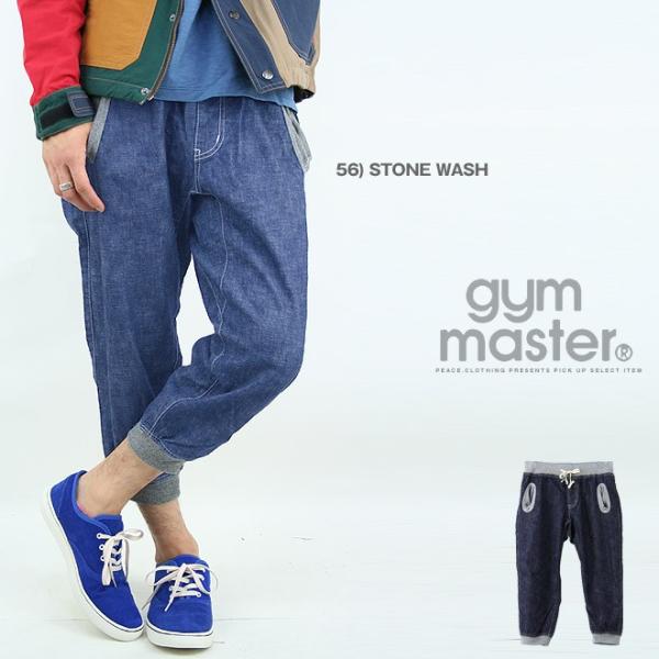 gym masterデニム リブ クロップド パンツ 7分丈 クライミング イージーパンツ ハーフ ショートパンツ 短パン ジーンズ クレイジー ジムマス…