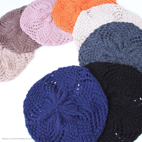 メール便 可 模様編み2 ベレー帽 コットンニットベレー帽 レディス 帽子 可愛い カワイイ シンプル 麻 【レディース/春夏用】◇【S/S】