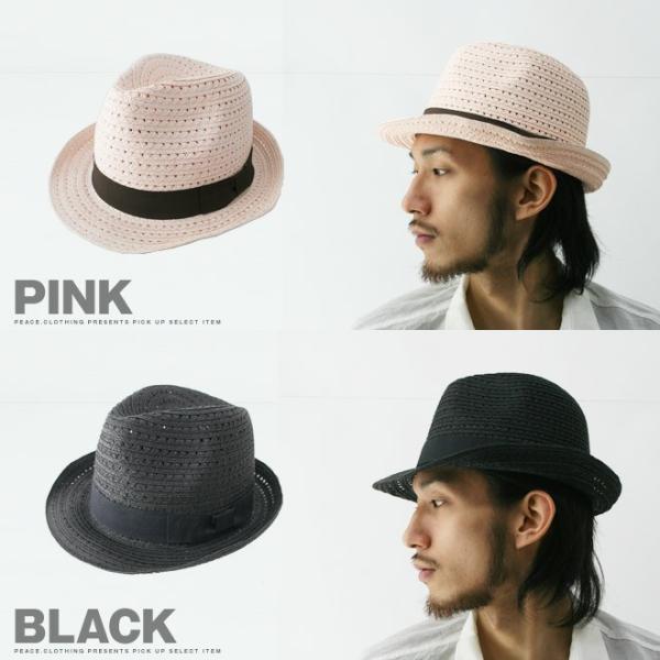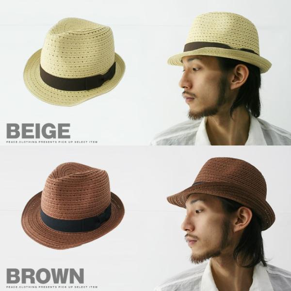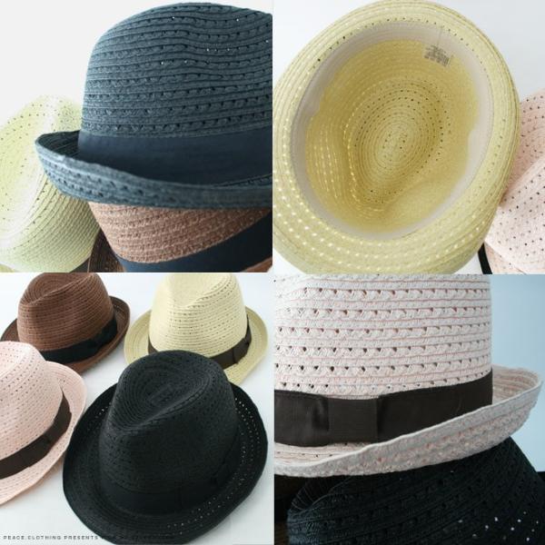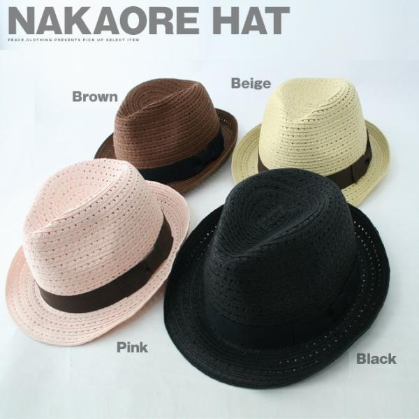 リボンベルトペーパー生地中折れハット帽子 麦わら帽子 6544男女兼用/メンズ/レディース/夏用/フェス/アウトドア◇S/S