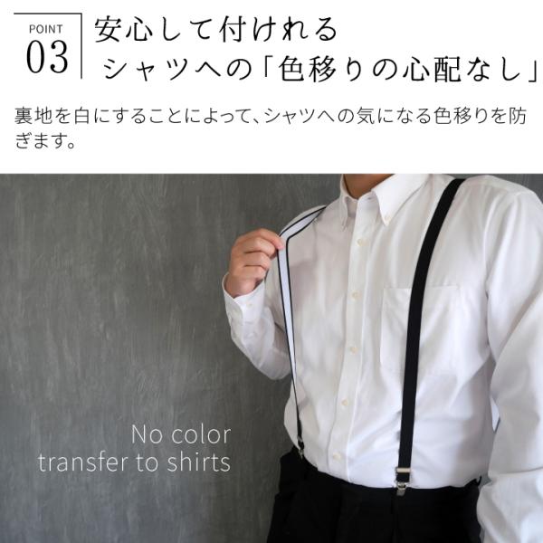 こちらのサスペンダーは色落ち防止のため、裏地が白色です。