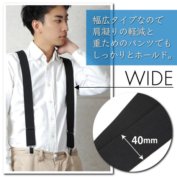 40ミリの幅広タイプでしっかりホールドするメンズサスペンダー