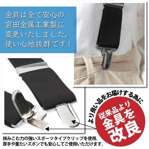 サスペンダー メンズ 40mm Y型 日本製 太い 無地 ワイド 幅広 スポーツクリップ
