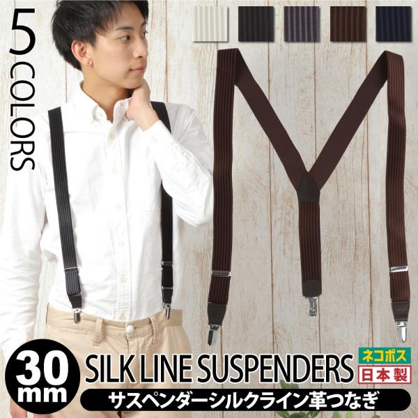 サスペンダー メンズ 30mm シルクライン Y型 革つなぎ 日本製 Made in Japan ビジネス オフィス スーツ オシャレ おしゃれ ファッション ギフト プレゼント 本革 レザー ブラック ホワイト グレー ブラウン ネイビー 紺 白 黒 30代 40代 50代 60代