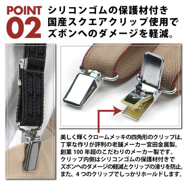 サスペンダー 25mm X型 メンズ スクエアクリップ シリコン 日本製 スーツ カジュアル フォーマル