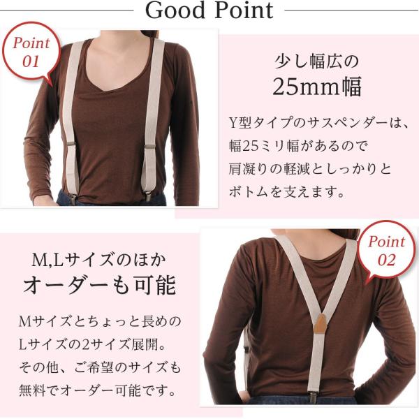 サスペンダー レディース 麻 リネン 麻混 25mm Y型 おしゃれ 日本製 マットゴールド メンズ