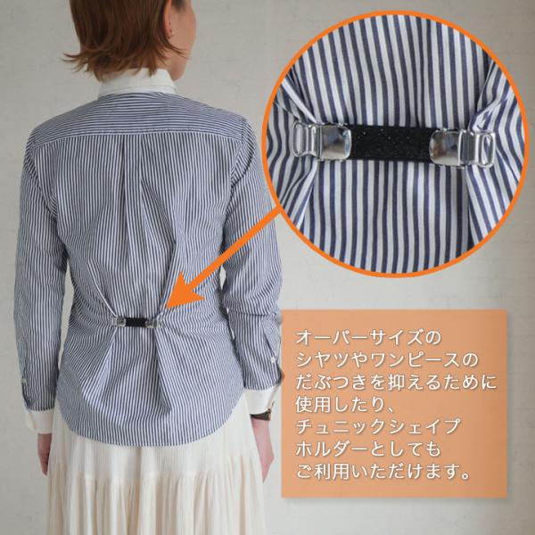 また、チュニックを押さえたり、ワンピースを押さえたりするのにも