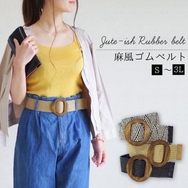 メッシュ ゴムベルト 太め ウッドバックル レディース 麻風 レディース 5cm幅 かわいい 高見え おしゃれ
