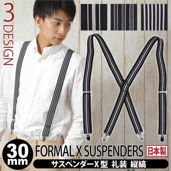 サスペンダー 礼装 ストライプ メンズ 日本製 フォーマル 30mm X型 博多織 モーニング タキシード