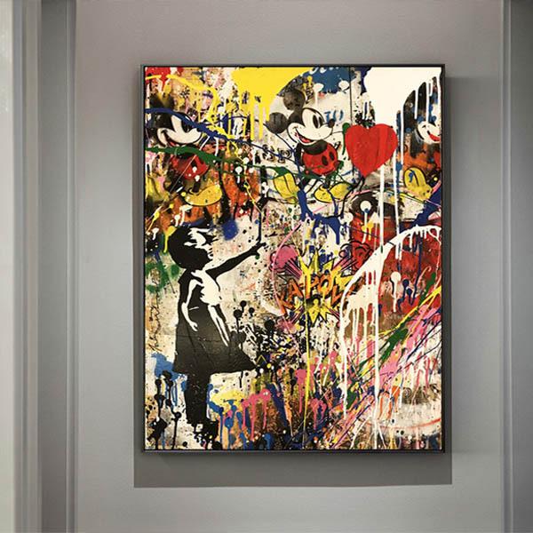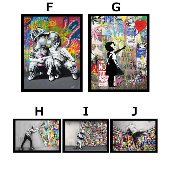 単品 33×43cm アートパネル 枠付きフレーム絵画 バンクシー 落書きアート カラフル 少女と風船 ストリートアート 壁掛け インテリア絵画 ウォールデコ
