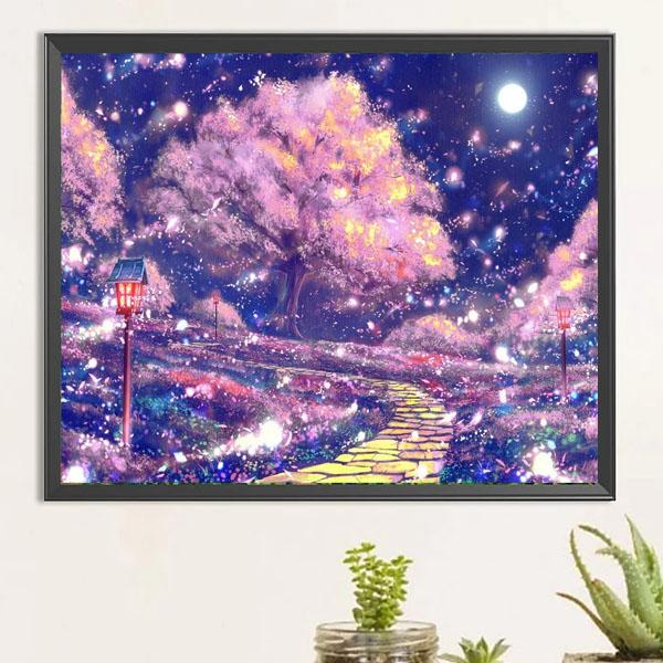 準上級 フル ダイヤモンドアート キット ビーズ刺繍 桜 満開 丘 満月 日本庭園 モザイクアート パズルアート リハビリ 趣味 絵画 カラービーズ