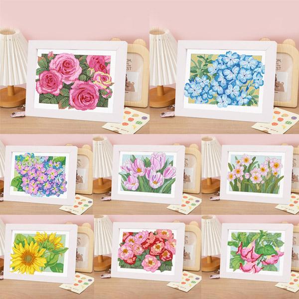 中級 フル ダイヤモンドアート キット ビーズ刺繍 ステンドグラス 花 フラワー 向日葵 薔薇 モザイクアート リハビリ 趣味 絵画 カラービーズ ハンドメイド