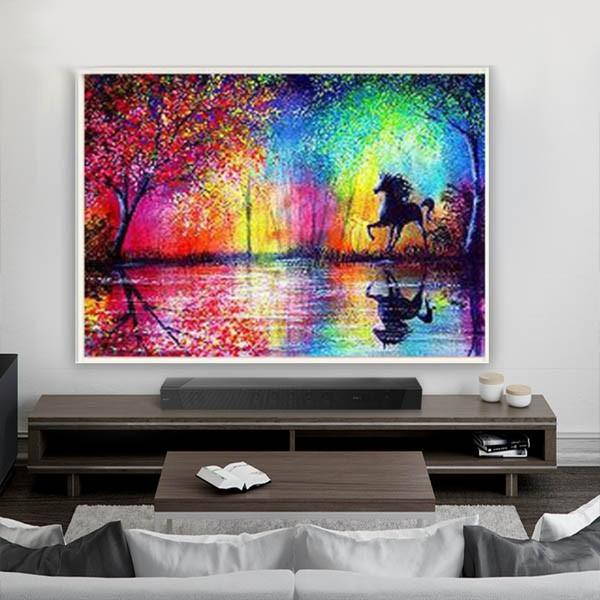準上級 フル ダイヤモンドアート キット ビーズ刺繍 虹色の森 馬 レインボー モザイクアート パズルアート リハビリ 趣味 絵画 カラービーズ