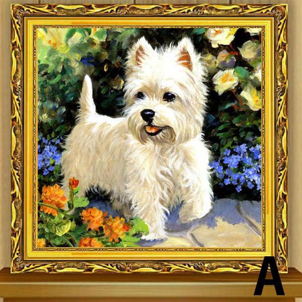 初級 フル ダイヤモンドアート キット ビーズ刺繍 白い犬 ホワイトテリア スパニエル ゴールデンレトリバー 子犬 モザイクアート リハビリ 趣味 絵画