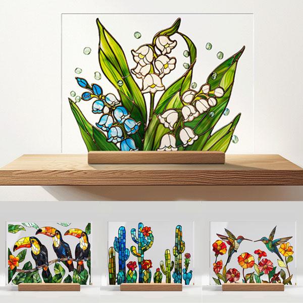 アクリルスタンド アクリルプレート ステンドグラス風 南国風 鳥 サボテン ポピー ボタニカル カラフル オブジェ デコレーション