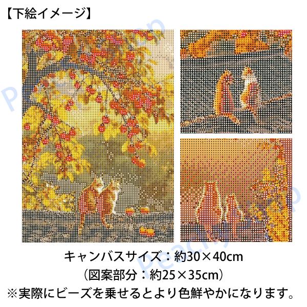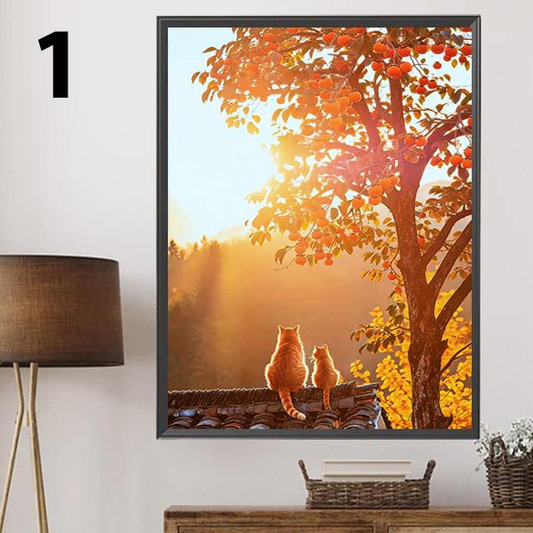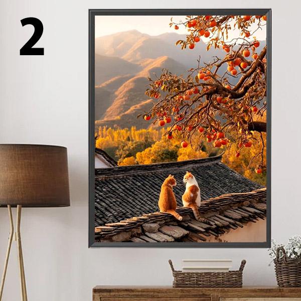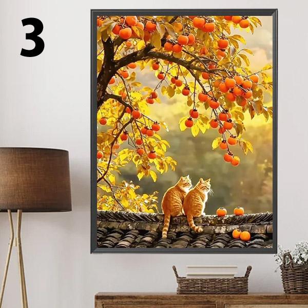 中級 フル ダイヤモンドアート キット ビーズ刺繍 田舎風景 瓦屋根 猫 柿の木 秋 モザイクアート リハビリ 趣味 絵画 カラービーズ