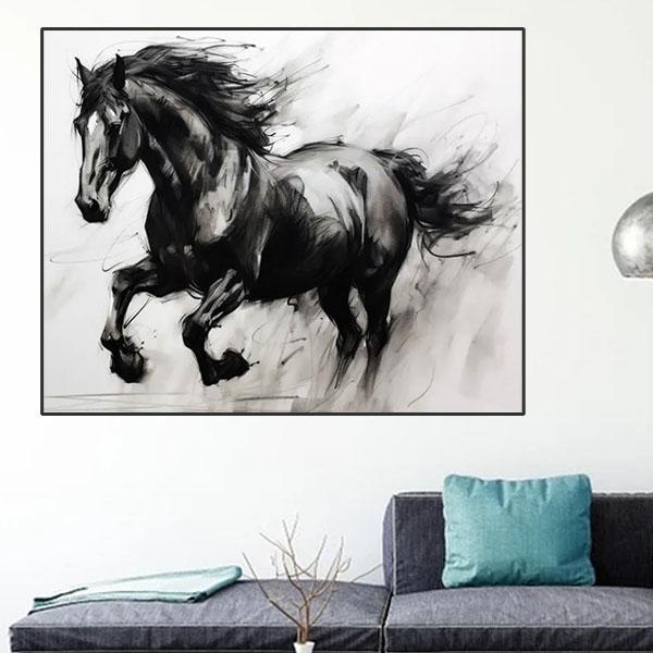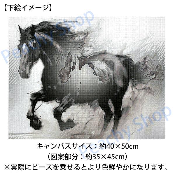 準上級 フル ダイヤモンドアート キット ビーズ刺繍 モノクロ 跳ねる馬 午年 水墨画 躍動感 モザイクアート パズルアート リハビリ 趣味 絵画 カラービーズ