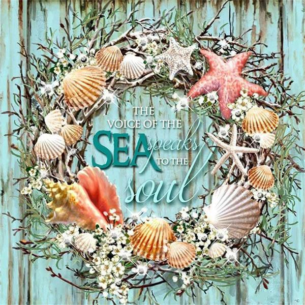 中級 フル ダイヤモンドアート キット ビーズ刺繍 海 西海岸 フラワーリース 貝殻 モザイクアート リハビリ 趣味 絵画 カラービーズ ハンドメイド