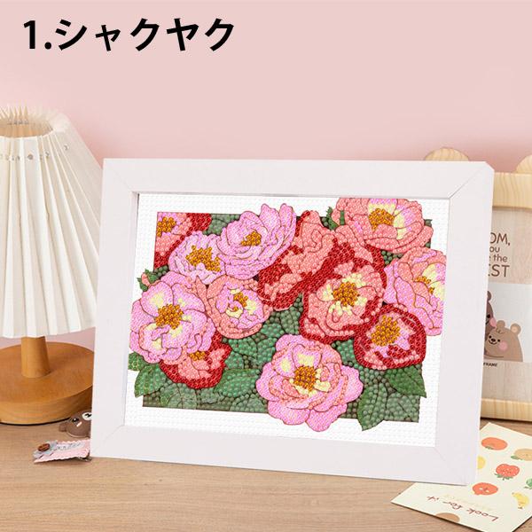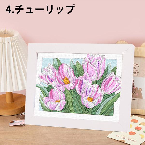 木製フレーム付き ダイヤモンドアート 刺繍キット 立体的 花畑 ローズ あじさい チューリップ パズルアート リハビリ 趣味 絵画 モザイクアート