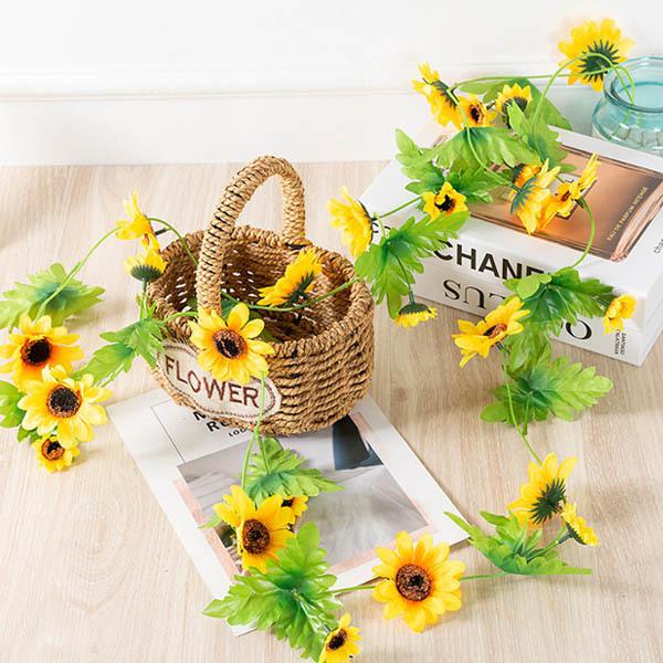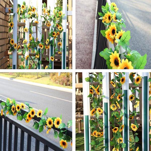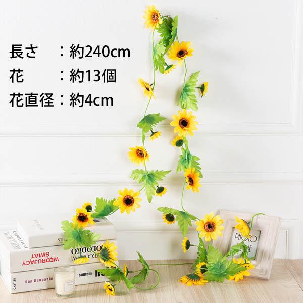 ひまわり ガーランド 造花 240cm 向日葵 サンフラワー フェイクグリーン ツタ ツル つるインテリア スワッグ イミテーション ディスプレイ 店舗装飾