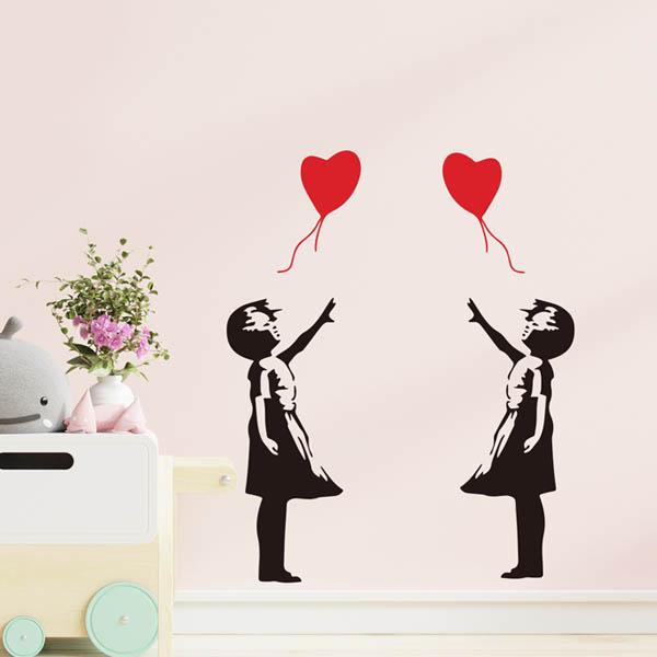 ウォールステッカー バンクシー 少女と風船 ストリートアート モノクロ シルエット インテリアシール 壁デコ DIY リビング