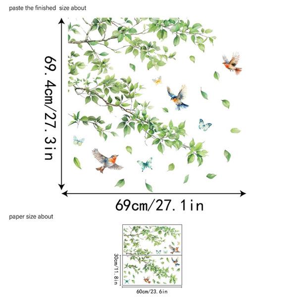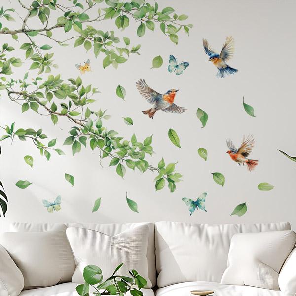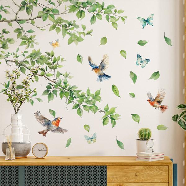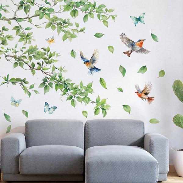 ウォールステッカー 木の枝 リーフ 小鳥 バード 初夏 フレッシュ グリーン アートステッカー インテリアシール DIY 剥がせる