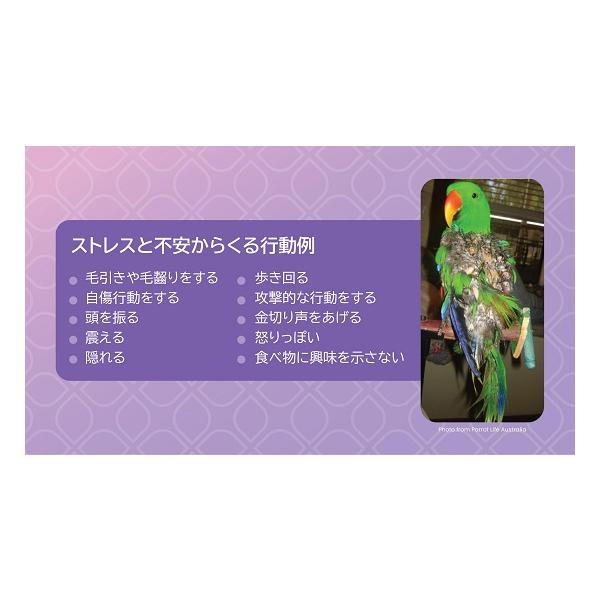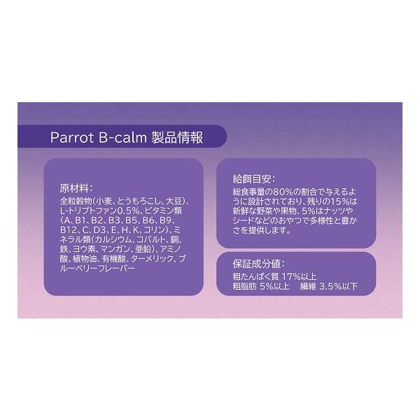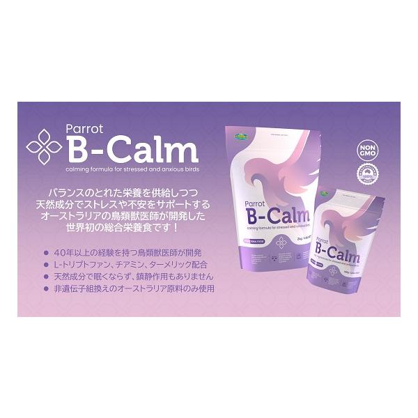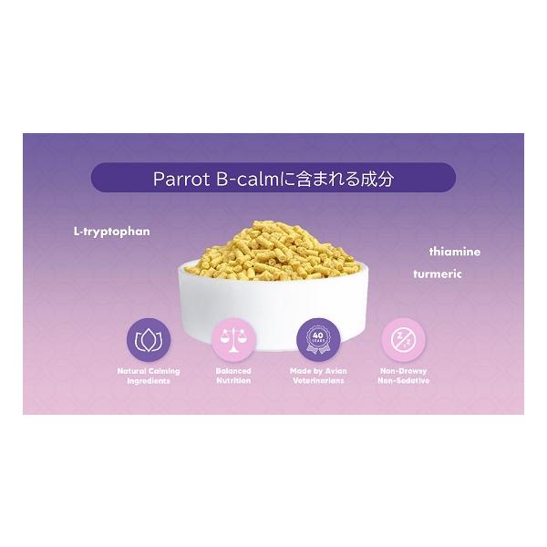Parrot B-calm(パロットビーカーム)は40年の経験を持つ鳥類専門獣医師が開発した、ストレスや不安からくる、毛引きや叫び声などをサポートする、世界初のインコ向けの機能性総合栄養食です。