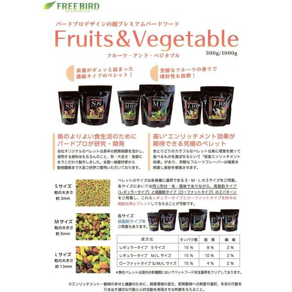 FREE BIRD S4(小粒)300g ローファットタイプ(低脂肪)フルーツ&ベジタブル ペレット フリーバード セキセイインコ オカメインコ