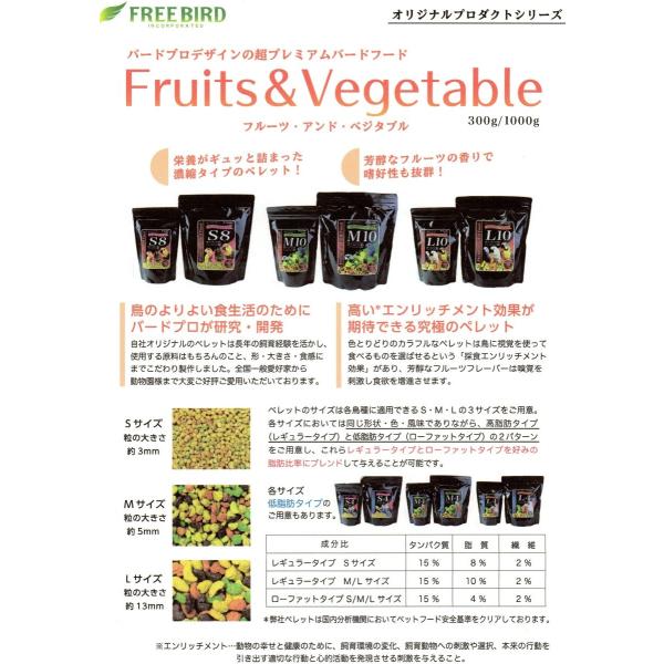 FREE BIRD S8(小粒)1000g レギュラータイプ(オールマイティ)フルーツ&ベジタブル ペレット 餌 フリーバード コザクラインコ