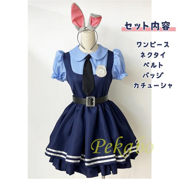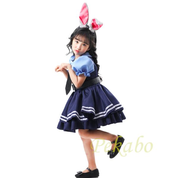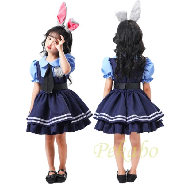 女の子 ウサギ 警察官 ポリス キツネ詐欺師 コスプレ 子供用 ハロウィン ズートピア コスチューム キッズ 仮装 ワンピース 動物 イベント 110 120 130 140 150