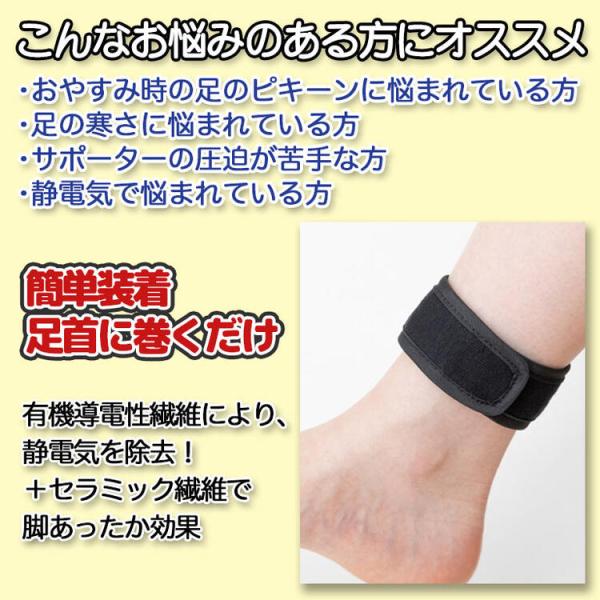 この脚ツランベルトは、センサーに影響する静電気を除去する効果(有機遵電繊維による除電効果)があり、おやすみ中のツラいピキーンを予防します。