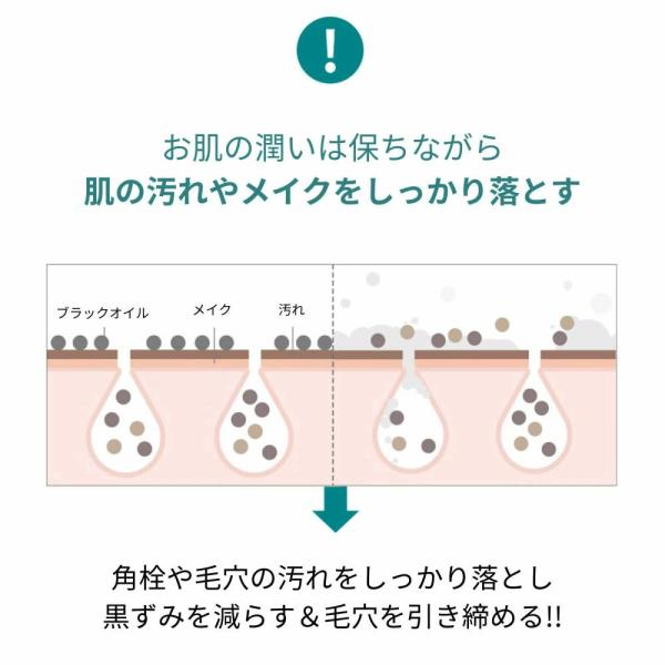 ブラックオイルが肌の内側の汚れを溶かし、泡立つことでそれらの汚れをスッキリ落としてくれます。手やブラシで馴染ませるとオイルがきめ細かなふわふわ泡に変身し、肌の汚れやメイクをすっきりクレンジング。ダブル洗顔は不要なのでこれ1本でOK!ココナッツ由来の洗浄成分が肌を労わりながら優しく洗い上げてくれます。植物オイル成分がしっかり保湿してくれるので、洗顔後のつっぱり感がなくしっとりとした仕上がり♪