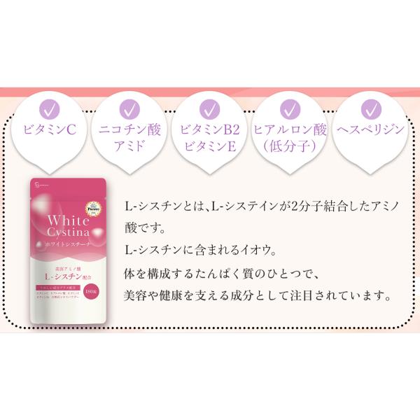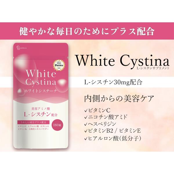【25日はクーポンで¥300OFF】[3個セット] ホワイトシスチーナ 180粒 約3ヶ月分 5400mg シスチン Lシスチン 高配合 ビタミンC 美容 lシステイン サプリ BeWave