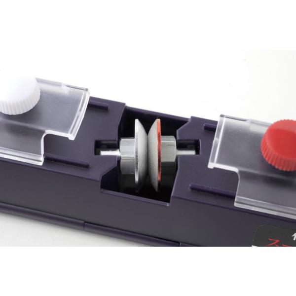 ☆お手入れは研ぎ器下部の裏蓋を外し、削り粉を水で洗い流すだけ。砥石は乾いたタオルか歯ブラシで削り屑を落としてください。 ☆驚異の高寿命!12000回、摩耗試験済み
