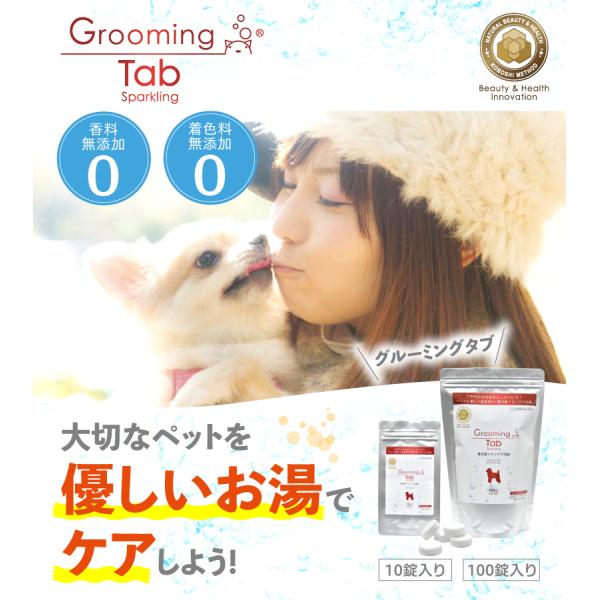 デリケートなペットの皮膚、被毛に優しい重炭酸イオンケア浴剤「グルーミングタブ」。