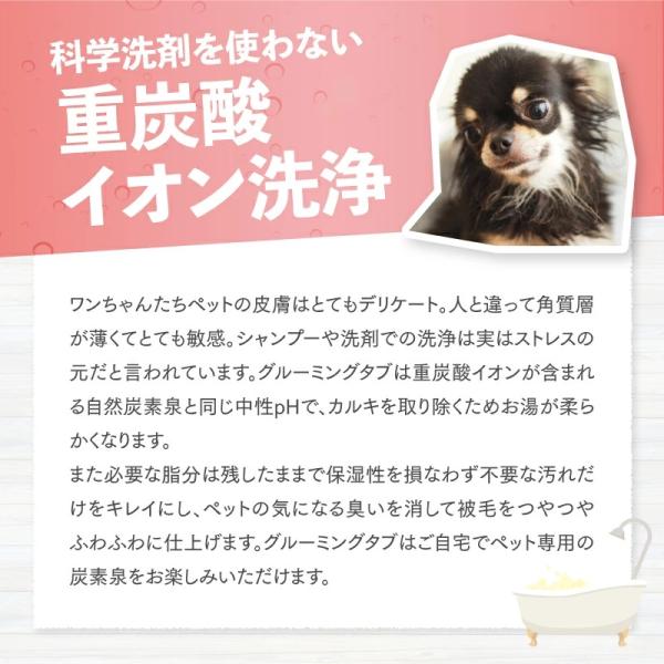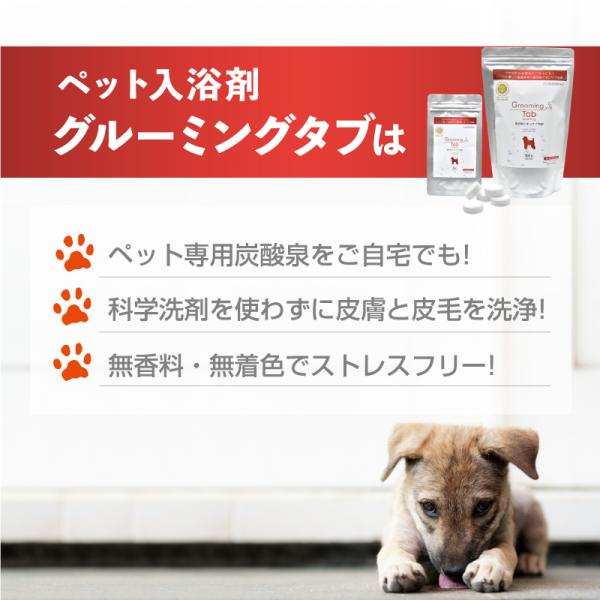 デリケートなペットの皮膚、被毛に優しい重炭酸イオンケア浴剤「グルーミングタブ」。