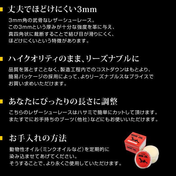 レザー シューレース ショート 2本組 87cm メンズ 本革 革紐 日本製 純正