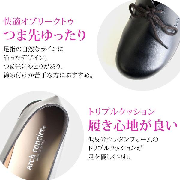 アーチコンシェル 歩きやすい コンフォート シューズ 日本製 オブリークトゥ ローヒール レディース 49136
