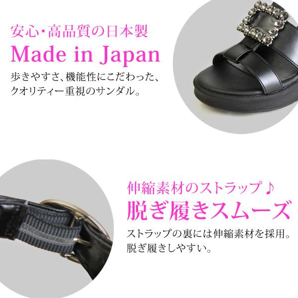 安心・高品質な日本製サンダル。ビジューと約5.5cmの美脚ヒールがポイントです。