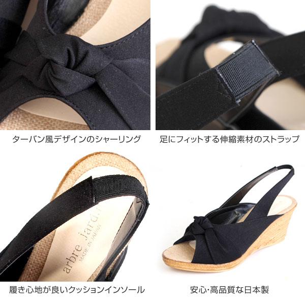 レディース サンダル ウェッジソールサンダル ミュール 日本製 オープントゥ ヒール6.5cm カジュアル arbre jardin アルブル ジャルダン 6900