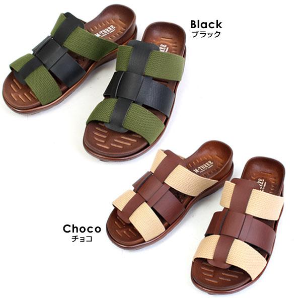 【アウトレット】M-THREE エムスリー 日本製 サンダル メンズ ブラック 39【返品交換不可】