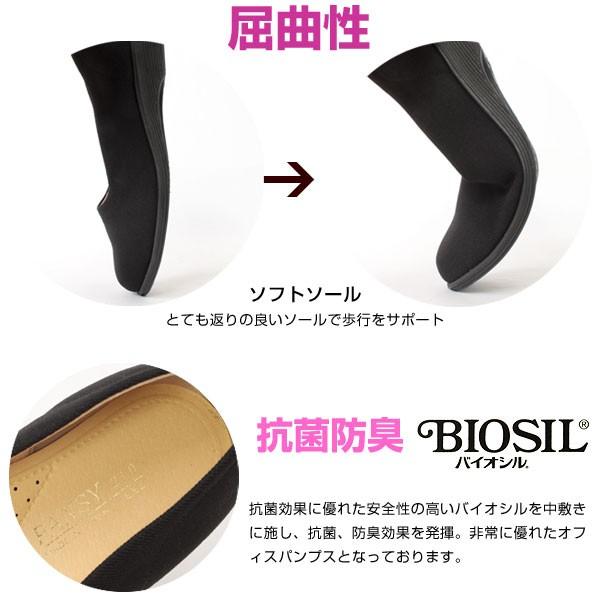 とにかく軽くて履きやすいストレッチパンプス。撥水加工だから雨の日も安心。外反母趾の足に最適な収縮性のあるストレッチ設計で優しくフィット。アーチクッション付きソフトソールで歩行をサポートします。さらに、抗菌効果に優れた安全性の高いバイオシルを中敷きに施し、抗菌、防臭効果を発揮します。