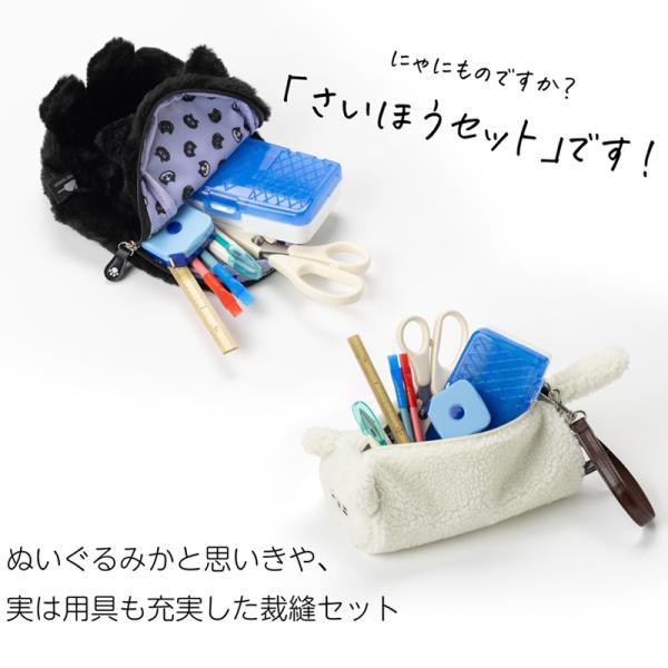 ニャンとさいほうペット よこ型 裁縫セット ブラック 猫 小学生 小学校 女子 男子 日本製 貝印 おしゃれ ネコ ねこバッグ 可愛い ソーイングセット ぬいぐるみ