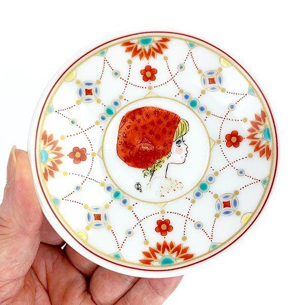 九谷焼の魅力である五彩「赤」「黄」「緑」「紺青」「紫」で水森亜土の世界観を表現しました。和絵の具でしか表現できない透明感と深みのある色絵磁器、絵の具を厚く盛り上げて塗る彩法は伝統工芸品ならではの特徴です♪◆サイズ:10cm×10cm×2cm