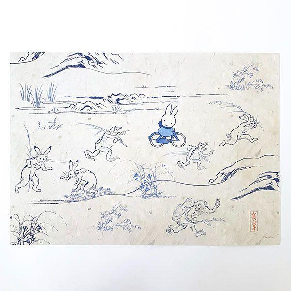 miffy×鳥獣戯画のA3サイズのポスターです。しおりもセットで付いています。お部屋のインテリアにいかがでしょうか?