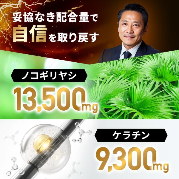 〇【業界No.1水準の配合量】業界トップクラスの、ノコギリヤシ13.500mg、ケラチン9,300mgを1袋に配合!圧倒的なこの配合量を実感してください!