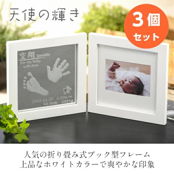天使の輝き×3個セット 赤ちゃん 手形 足形 ホワイト 木製 フォトフレーム 出産内祝い 写真立て 出産 内祝い お返し