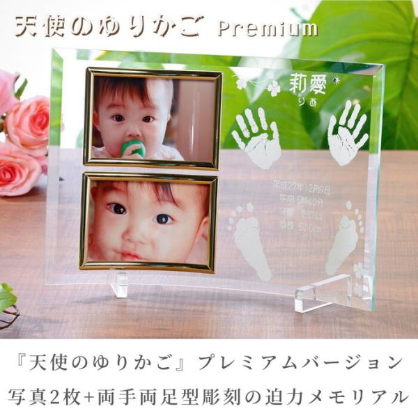 天使のゆりかごプレミアム 赤ちゃん 手形 足形 ガラス フォトフレーム ベビー メモリアル 写真立て 出産内祝い 出産祝い 名入れ お返し100日祝い