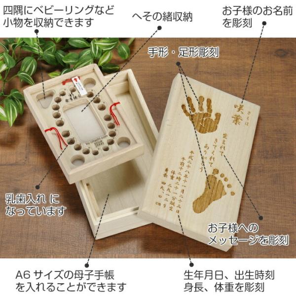 おいたちの小箱(手形・足形彫刻入り)乳歯 母子手帳 へその緒 メモリアルボックス 乳歯ケース へその緒ケース 臍帯箱 手形 足形 出産祝い 名入れ 内祝い